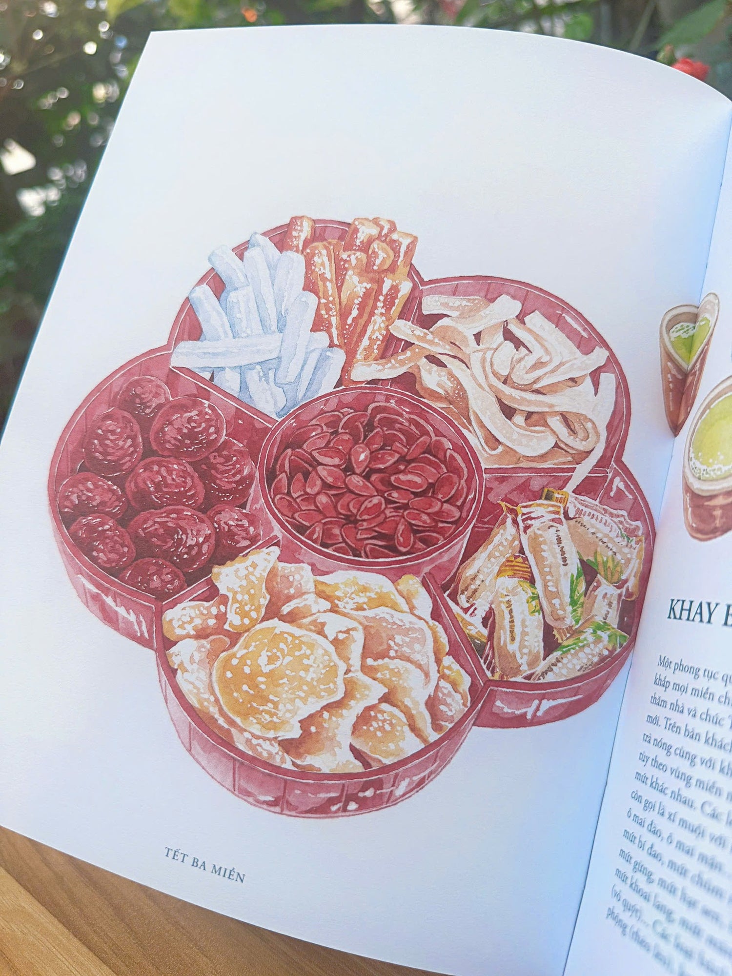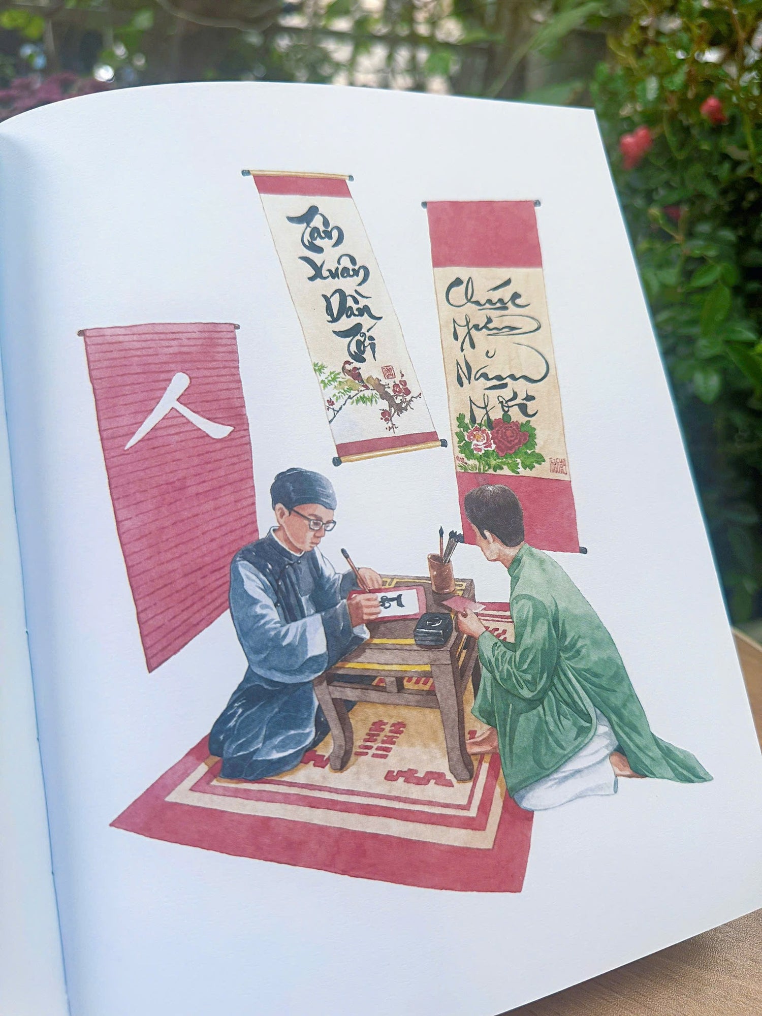 The book presents a journey through the Tết season — from the early preparations in the lunar calendar to the lively celebrations of New Year’s Day and beyond. Each scene captures iconic customs such as cleaning the home, paying tribute to ancestors, preparing traditional foods like bánh chưng and bánh tét, decorating with flowers, and shopping at bustling spring markets. Through detailed descriptions and watercolor-style illustrations, readers gain insight into the meanings behind these traditions and the values they express: family connection, gratitude, hope, and cultural continuity.